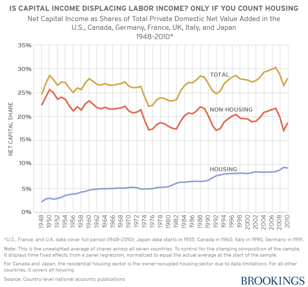 With regard to wealth distribution, the Brookings Institute notes that a large portion of Piketty’s chart is explainable by the increase in the value of housing, which is more broadly distributed. However, that broad distribution was itself the result of policies and financial products designed to offer concessionary financing to homeowners…a form of capital predistribution.
