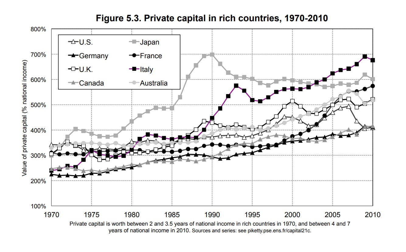 capital outpacing economic growth or wages. If capital ownership is evenly distributed, then society as a whole can benefit from this divergence. The critical insight here is that in advanced capitalist societies where growth is slow, the initial capital endowment plays a vital role in wealth formation. Hence, it is especially important for citizens of advanced capitalist societies with low population and rapid technological growth to own capital assets.